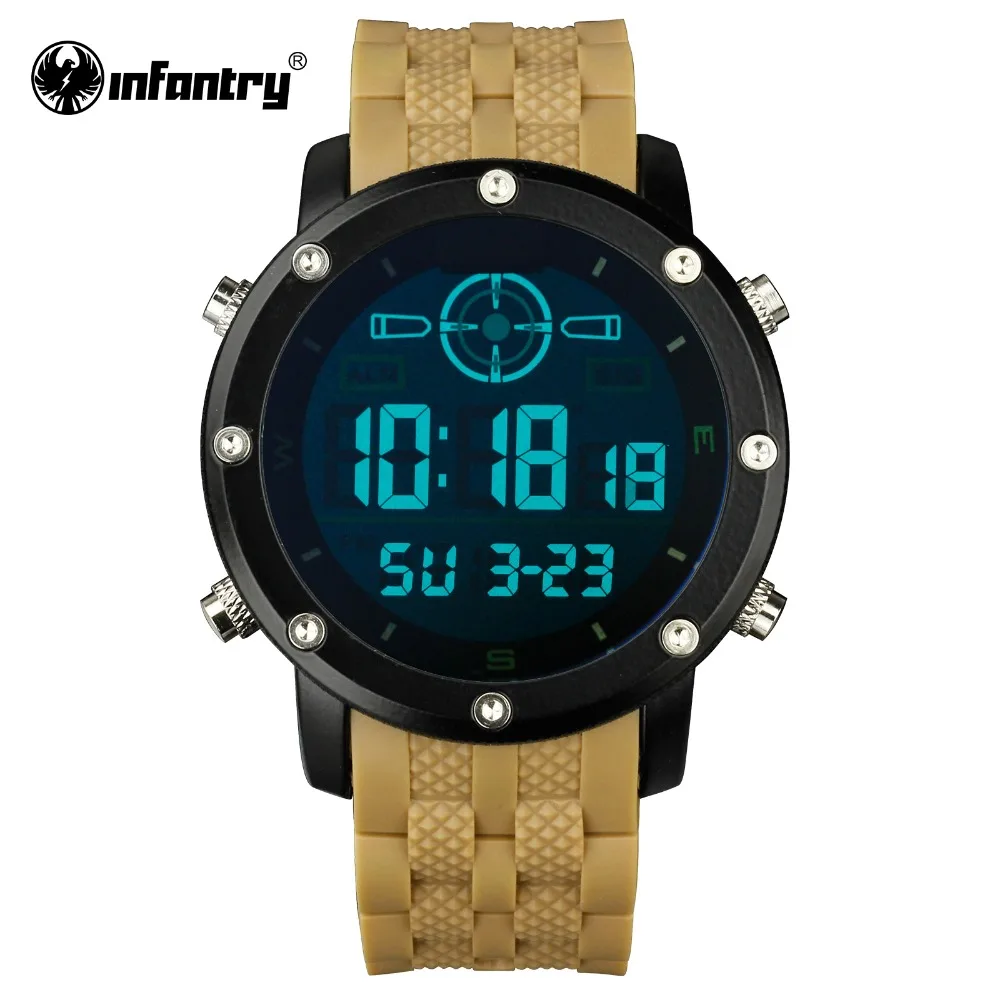 find the best price for INFANTRY Men's Watches Digital Tactical Sport Army Wrist Watch Brown Silicone Hot Sale Quartz Watch for Men Relogio Masculino by AliExpress.