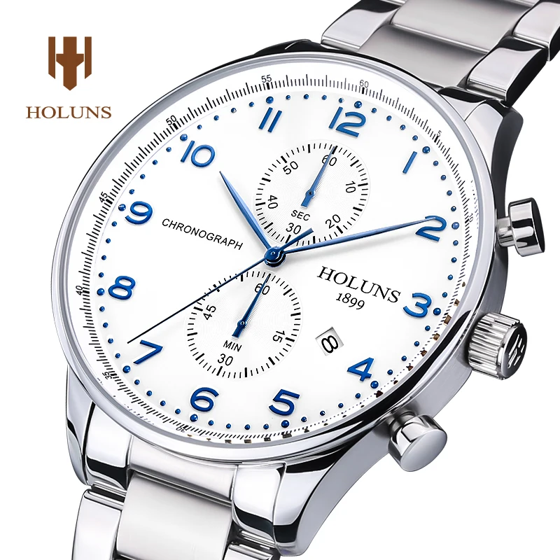 Luxury HOLUNS watch men sapphire glass waterproof date leather strap Chronograph Quartz watch relogio masculine Description