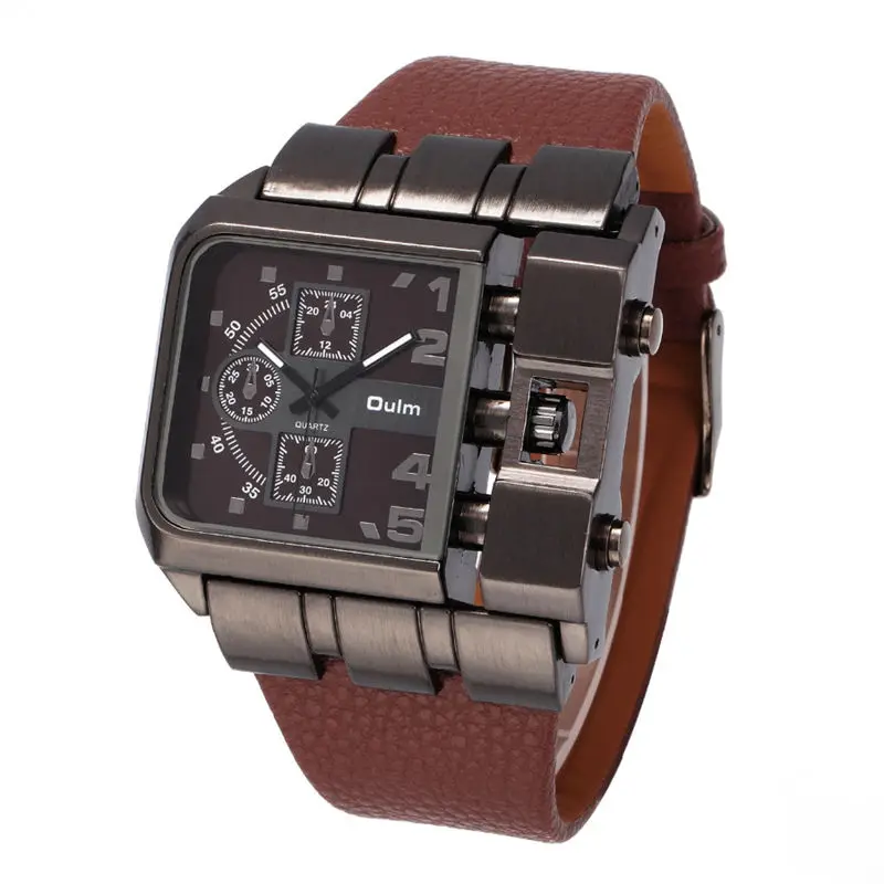 Men's Wrist Watches Luxury Design Oulm Quartz Watch Men Square Dial Leather Strap Male Military Antique Clock erkek saat Description