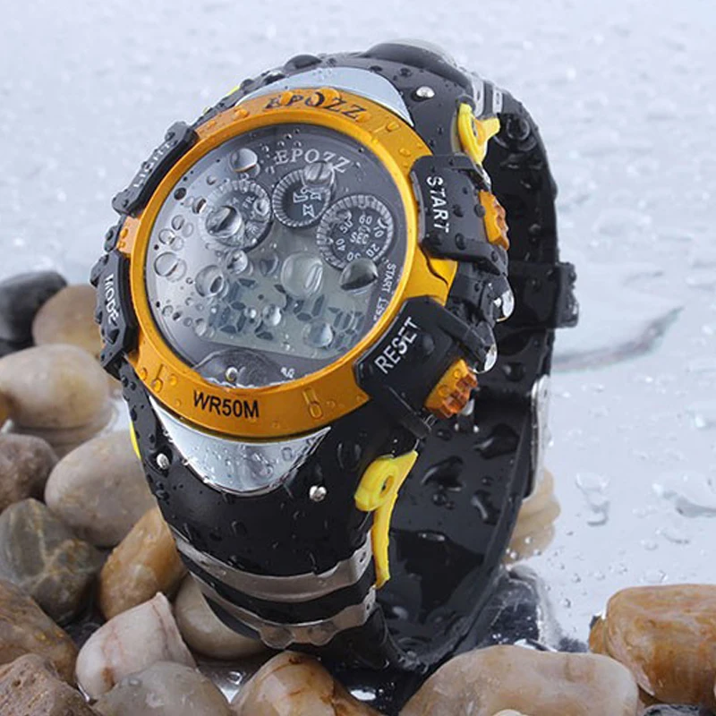 find the best price for LED Diaplay Waterproof 50M Swim Men Sport Watch Student Fashion Military Multifunctional Wristwatches Auto Date Alarm 1315 by AliExpress.