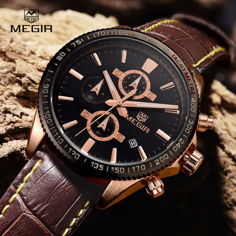 Megir fashion leather stop watch man casual luminous brand quartz watches men's wrist watch chronograph hour for male 3001 Articles Tips