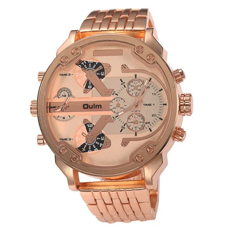 Oulm Male Military Watches Golden Quartz-watch High Quality Top Brand Men Full Stainless Steel Wristwatch relogio masculino Description