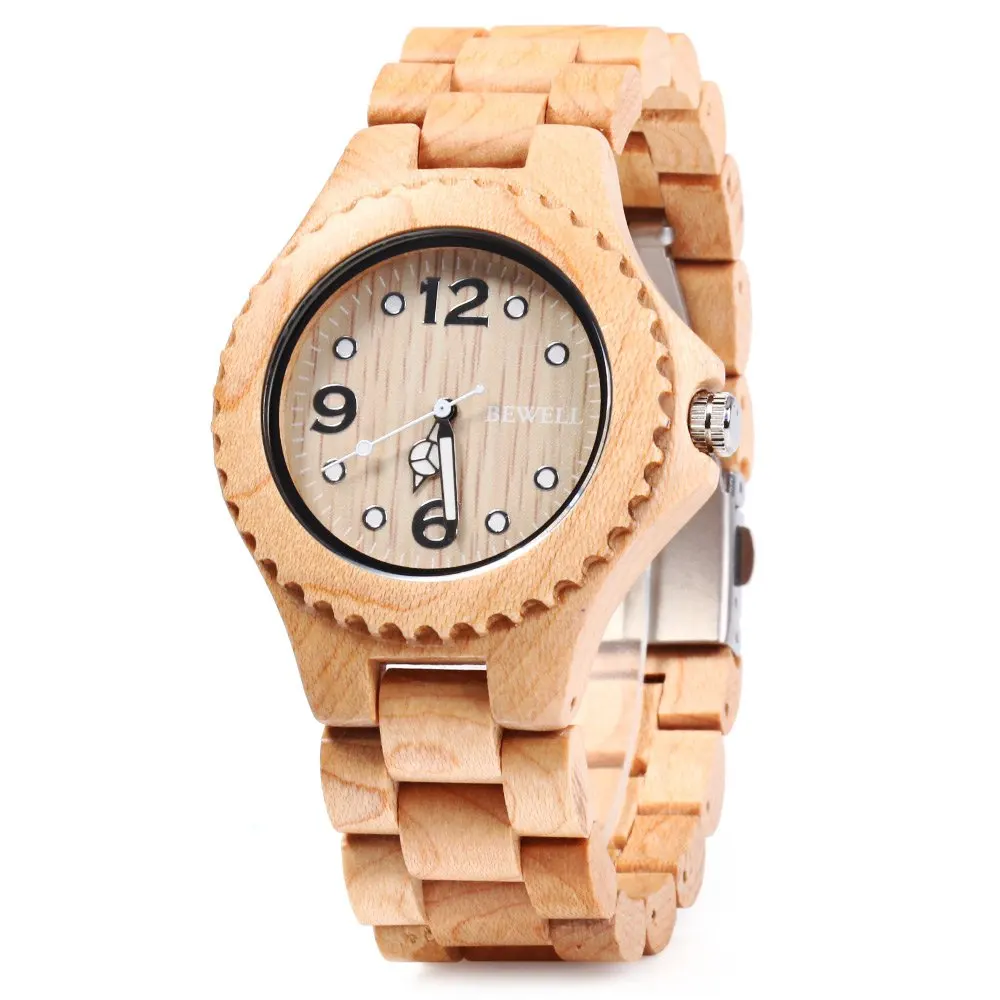 Main Features : Bewell Men Wooden Watch New Year Gift Bangle Quartz Watch With Calendar Display Role Men Relogio Masculino Watches Relojes