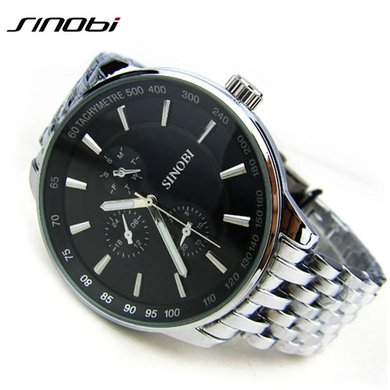 find the best price for Sinobi Dress Quartz Watches Men Business Sports Military Steel Band Casual Wristwatch Waterproof Relojes hombre 2016 New by AliExpress.