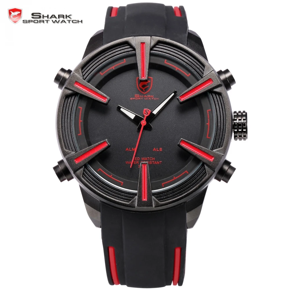 Main Features : Dogfish Shark Sport Watch Auto Date LED Display Black Red Silicone Strap Band Digital Military Men's Quartz Wristwatch / SH384