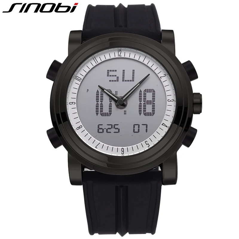 Main Features : SINOBI 2016 Mens Watches Top Brand Luxury Digital Analog Display Silicone Band Fashion Watch Men Multifunction Relogio Masculino