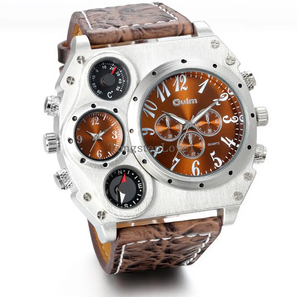 Oulm Luxury Brand Men Leather Watch Sport Quartz Watches For Men Male Casual Clock Military Watch engrave Articles