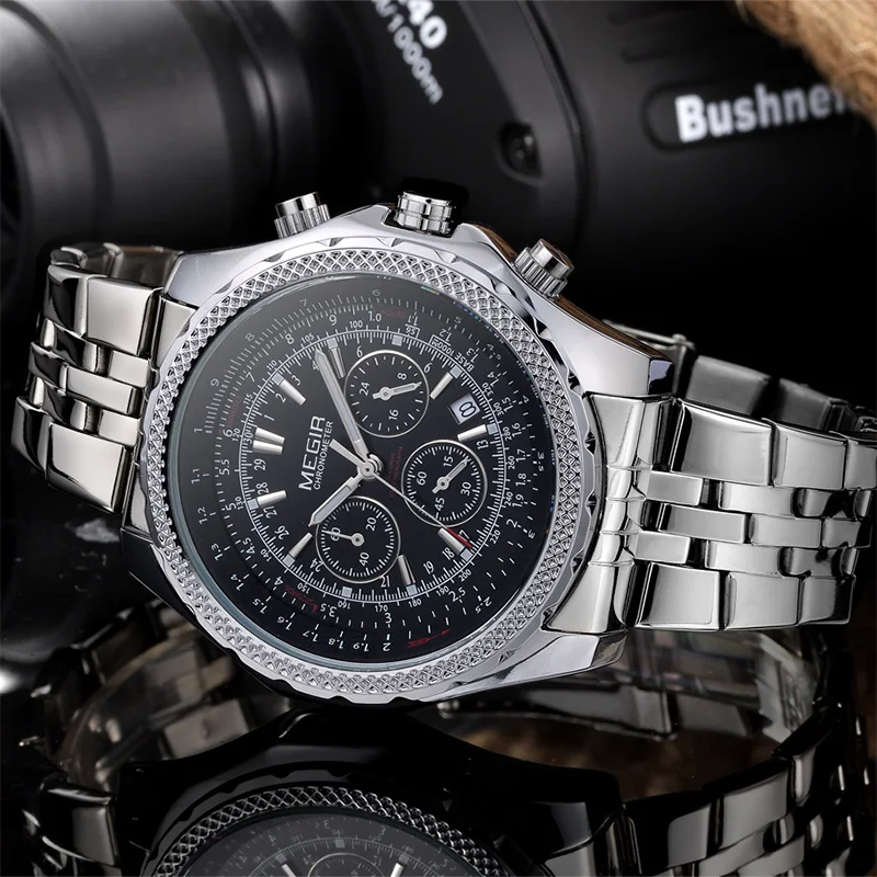 find the best price for Orologi Orologio Uomo Megir Chronograph Uhr Japan Movt Quartz Watch Stainless Steel Back Watch Quartz-Watches Men Sport Hodinky by AliExpress.