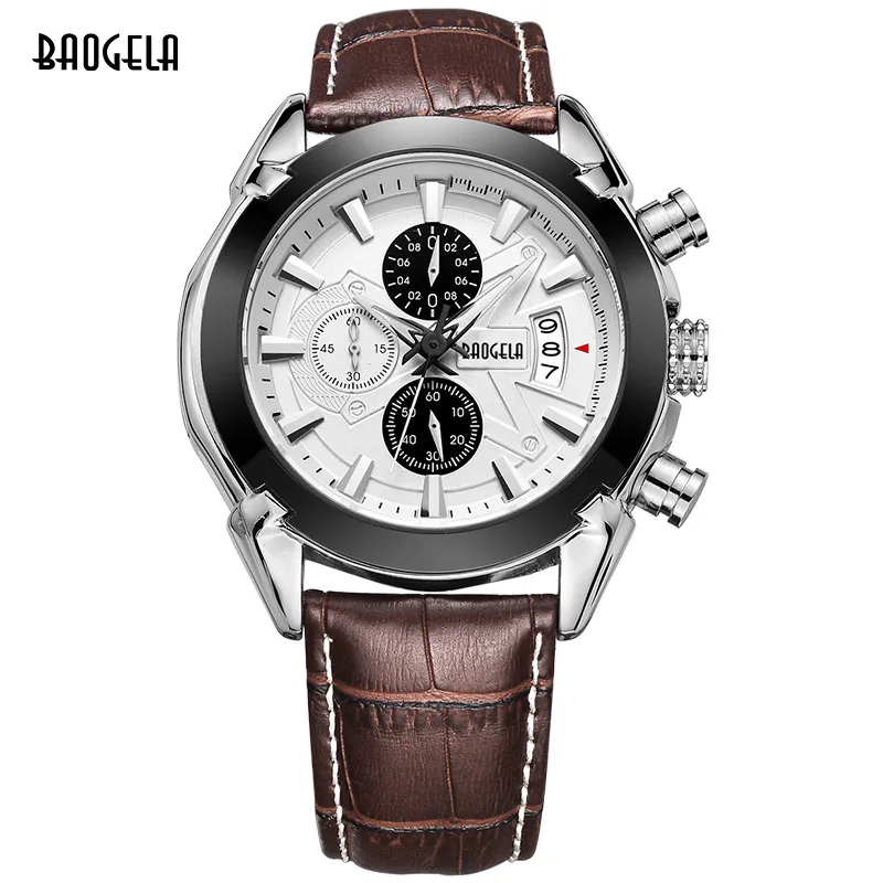 BAOGELA hot brand quartz watch man fashion analog watches men casual chronograph hour luxury luminous leather wristwatch male Description