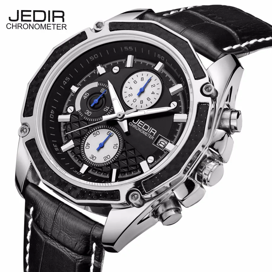 Main Features : Brand Jedir 2016 New Men's Watches Quartz Watch Men Real Three Dial Luminous Waterproof 50M Outdoor Sports Leather Strap 02-2