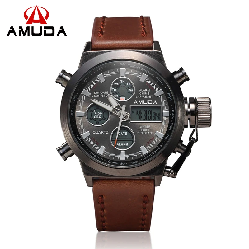 Discount for 2016 AMUDA Brand Dive LED Watches Men Sport Military Watch Genuine Leather Quartz Watch Men Wristwatches Relogio Masculino ?