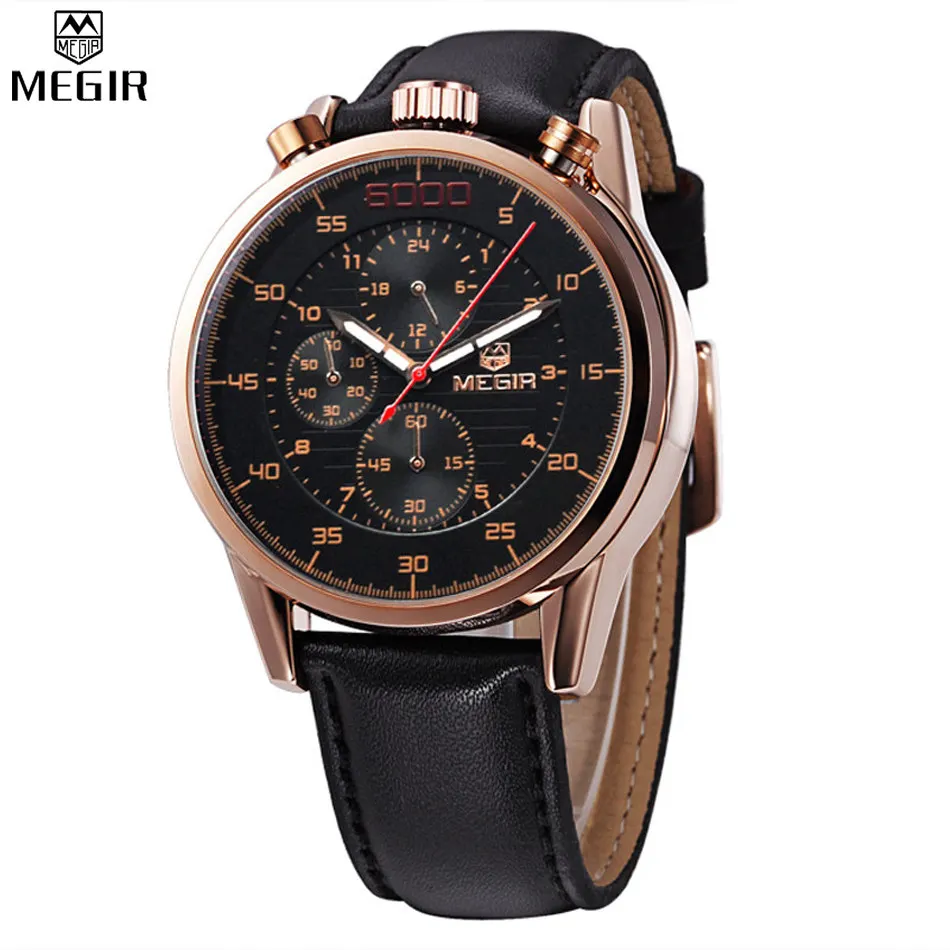 MEGIR Brand Military Sport Watches Analog Display Date Chronograph Genuine Leather Watch Men Watches Relogio Masculino /ML3002M Description